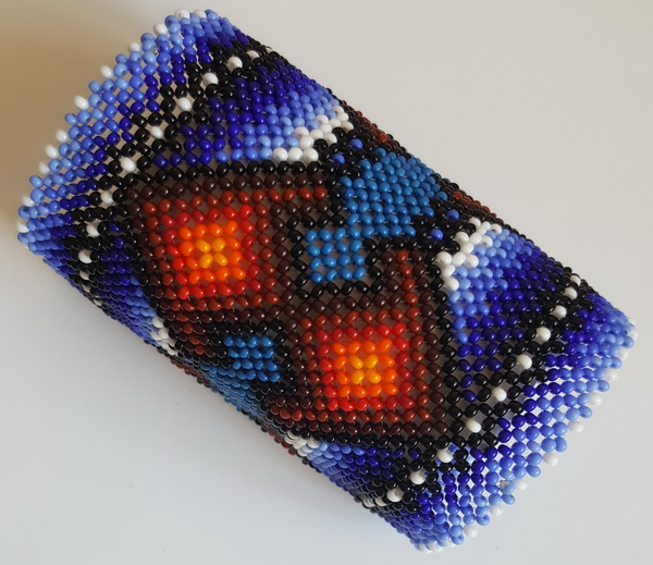Изображение Рунуа – змеи, несущей Знание, в синих тонах, символизирующих энергию Воды, наряду с присутствием цветов огненной энергии придает обладателю браслета способность к текучести, гармонизируя энергии водной и огненной стихий.